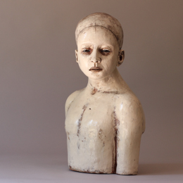 Inspired by characters within larger paintings, 'Seeker' comes from the young boy, Leonardo, who is looking out from Titian's 'Pesaro Altarpiece' of 1526.